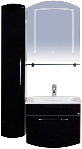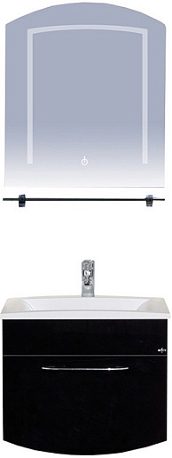 Комплектация: зеркало для ванной с подсветкой, сенсорным выключателем и стеклянной полкой.