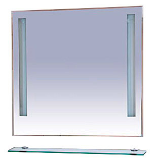 Комплектация: зеркало с двумя встроенными светильниками, стеклянная полочка.