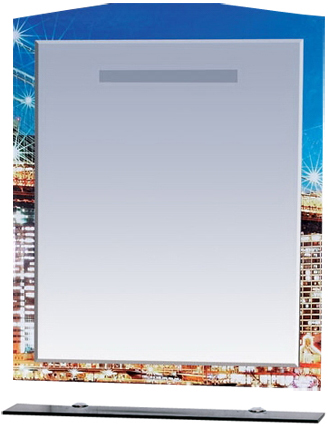 Комплектация: зеркало для ванной в раме с подсветкой и полкой.