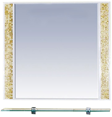 Комплектация: зеркало для ванной с декором мозаика и стеклянной полкой.