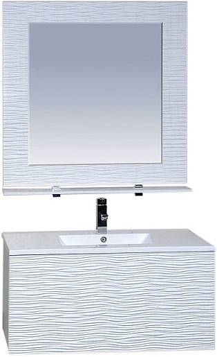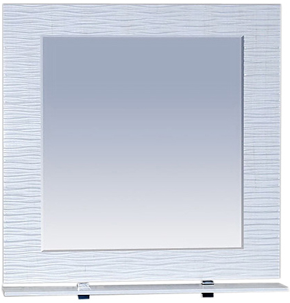 Комплектация: зеркало для ванной в раме с подсветкой и полкой.