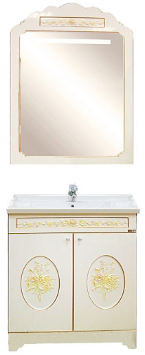 Цвет: бежевая патина/декорОписание: подсветка, система подогрева зеркального полотна, предотвращающая запотевание.