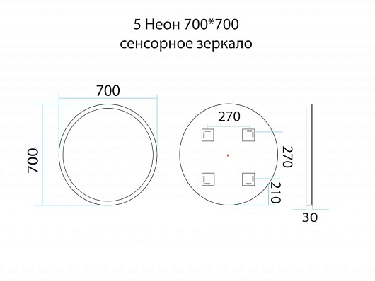 Misty Зеркало Неон 5 LED 70x70 сенсор на корпусе