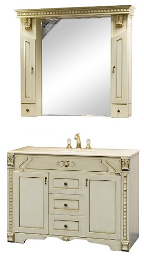 Цвет: бежевый/патинаОписание: дверки, ящики, подсветка, система подогрева зеркального полотна, предотвращающая запотевание.