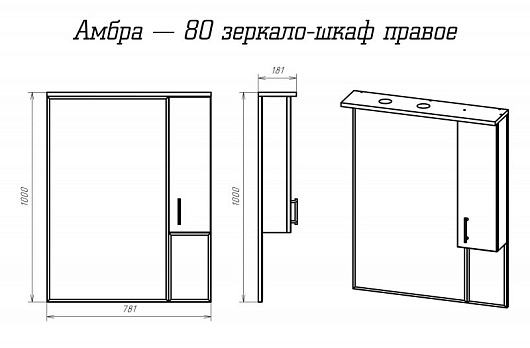 Misty Зеркало-шкаф для ванной Амбра 80 R