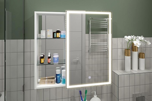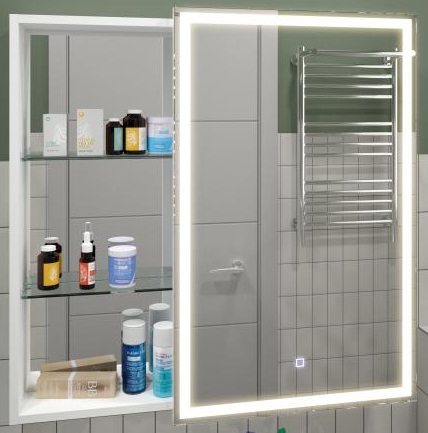 Оснащение зеркала: доводчик, зеркало с подсветкой, розеткой, розетка и выключатель снаружи, сенсорный выключатель, сенсорная кнопка с функцией диммирования.Производитель: