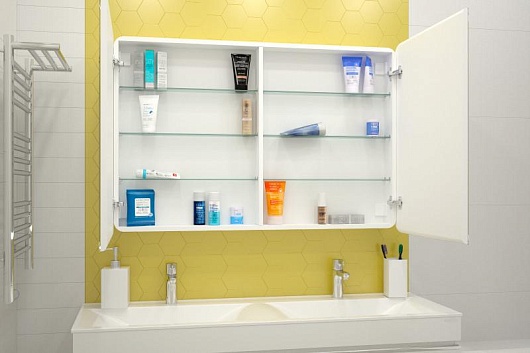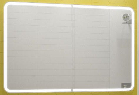 Оснащение зеркала: доводчик, зеркало с подсветкой, розеткой, розетка и выключатель снаружи, датчик движения «на взмах руки».Производитель: