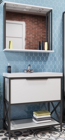 - Зеркало Бруклин 80 арт. 543941: влагостойкое полотно, полочка, розетка, светильники.