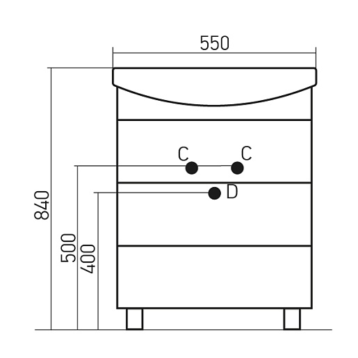 - Тумба Диамант 55 арт. 522469: выдвижной фасад - 3 шт., хромированная фурнитура.