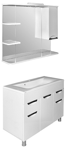 Комплектация: влагостойкое зеркальное полотно, шкафчик, полочки.