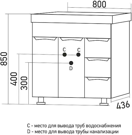 - 2 распашные дверцы, 3 выдвижных ящика.