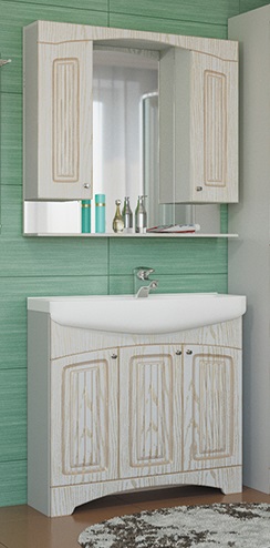Комплектация: влагостойкое зеркальное полотно, шкафчик, полочки.