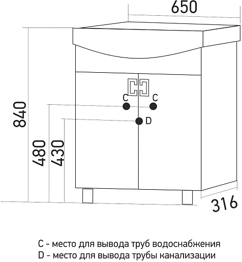 Тумба с раковиной Mixline Квадро 65 - арт. 550494 / 450011.