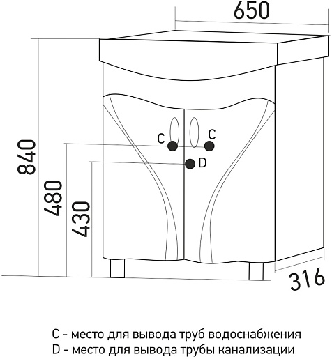 Тумба с раковиной Mixline Лима 65 - арт. 551703 / 450011.