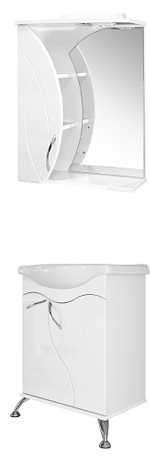 Комплектация: влагостойкое зеркальное полотно, шкафчик, полочки.