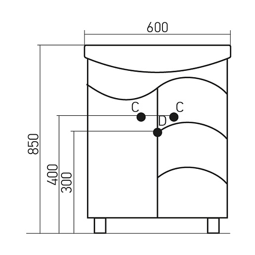- Мебельная раковина Элегия 60, фаянс, белая.