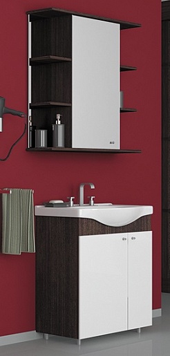 Комплектация: влагостойкое зеркальное полотно, шкафчик, полочки.