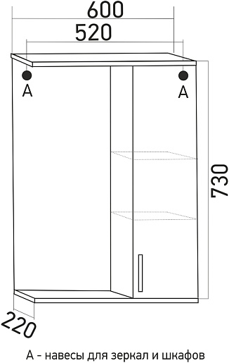 Зеркало-шкаф Mixline Мираж 60 R - арт. 524724.
