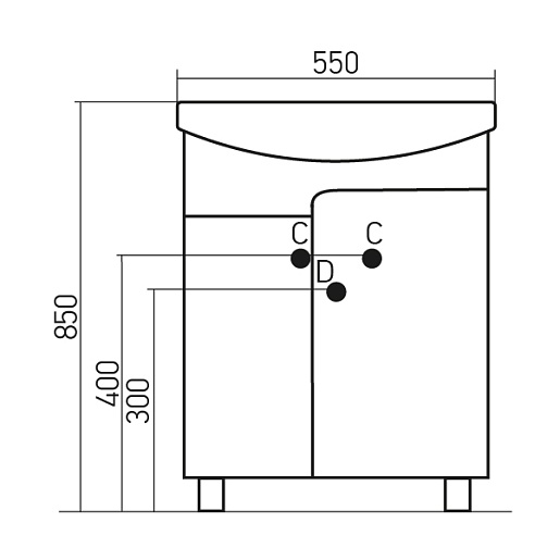 - Тумба Посейдон 55 арт. 523169: распашной фасад - 2 шт., хромированная фурнитура.