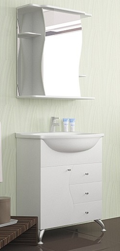 Комплектация: влагостойкое зеркальное полотно, шкафчик, полочки.