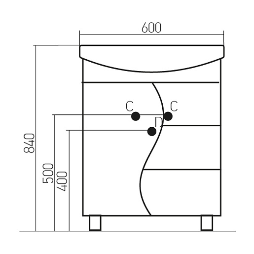 - Тумба Венеция 60 арт. 530451: выдвижной фасад - 3 шт., распашной фасад -1 шт., хромированная фурнитура.