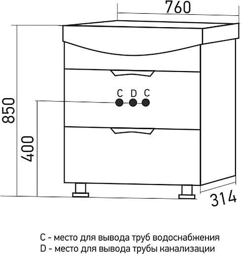 Комплектация: тумба, раковина, ножка (4 шт.).