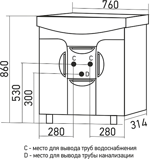 Комплектация: тумба, раковина, ножка (4 шт.).