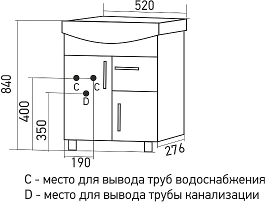 • 2 распашные дверцы, 1 выдвижной ящик.