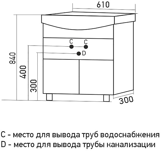 Тумба с раковиной Mixline Мистраль 60 - арт. 548994 / 521527.