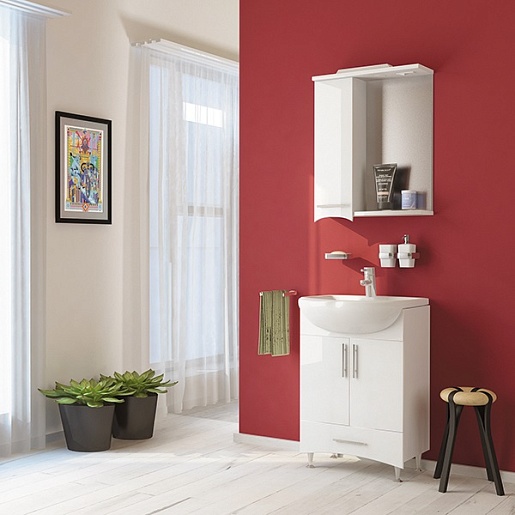 - Тумба Одиссей 55: арт. 523167 , распашной фасад - 2 шт., ящик, хромированная фурнитура.