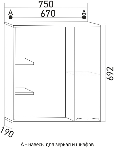 Зеркало-шкаф Mixline Этьен 75 R - арт. 529941.