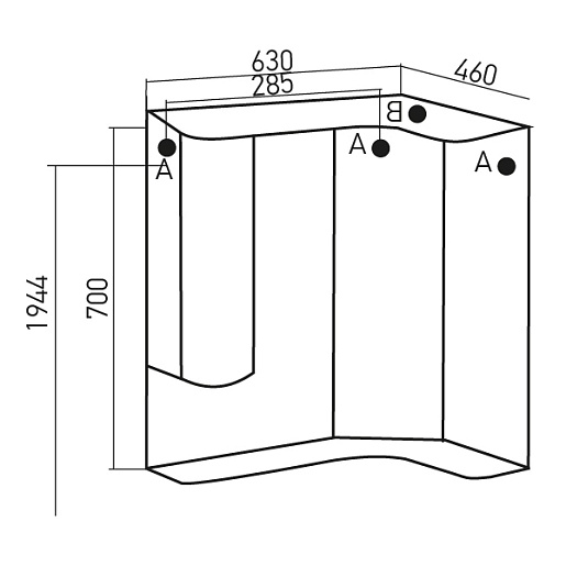 Описание: влагостойкое зеркальное полотно, шкафчик, полочки.