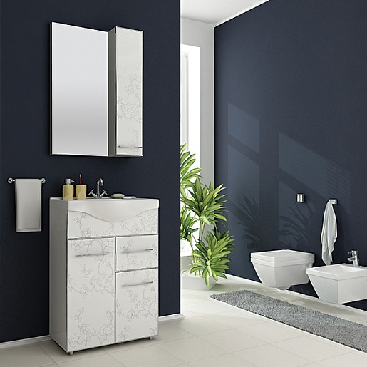 Описание: влагостойкое зеркальное полотно, шкафчик, полочки.