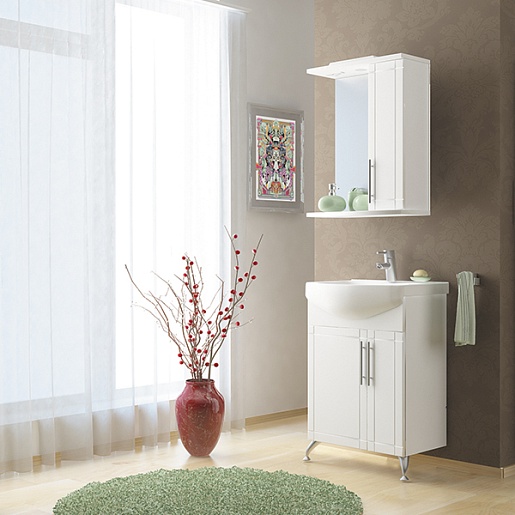 Описание: влагостойкое зеркальное полотно, шкафчик, полочки, подсветка.