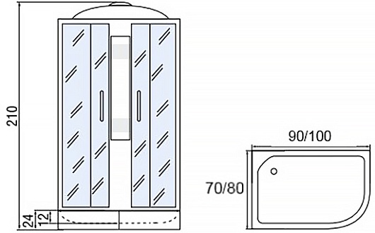 Душевая кабина Мономах 100x70 100/70/24 МЗ L - арт. 10000005819.