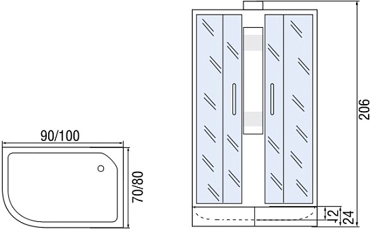 Мономах Душевая кабина 100x70 Б/К 100/70/24 МЗ R