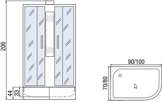 Мономах Душевая кабина 100x80 Б/К 100/80/44 МЗ R