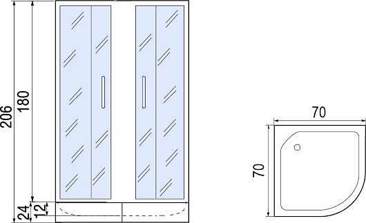 - Размер (ШxДxВ): 70x70x180 см.