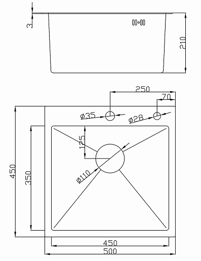- Толщина мойки-3/0,8 мм.