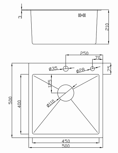 - Толщина мойки-3/0,8 мм.