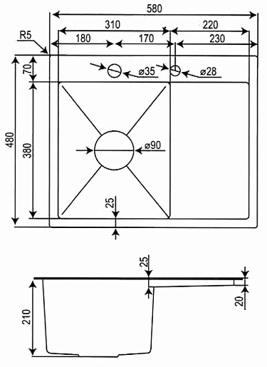 Hoffger Мойка для кухни 5848L Satin левая чаша
