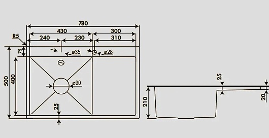 Hoffger Мойка для кухни 7850L Black левая чаша