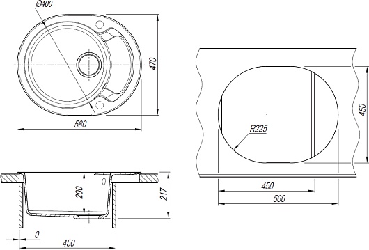 - Установочный проём (ШxГ): 560 x 450 мм.