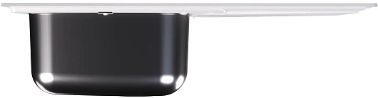 Большая прямоугольная чаша выполнена из нержавеющей стали, а бортики и широкое крыло - из литьевого мрамора.