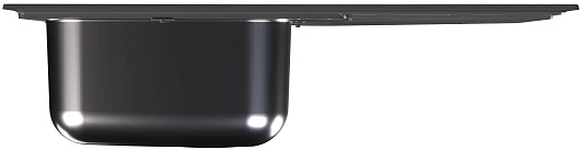Большая прямоугольная чаша выполнена из нержавеющей стали, а бортики и широкое крыло - из литьевого мрамора.
