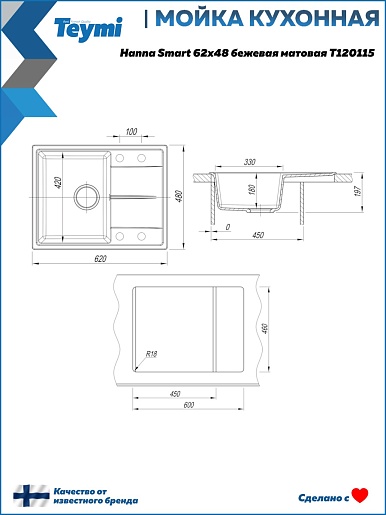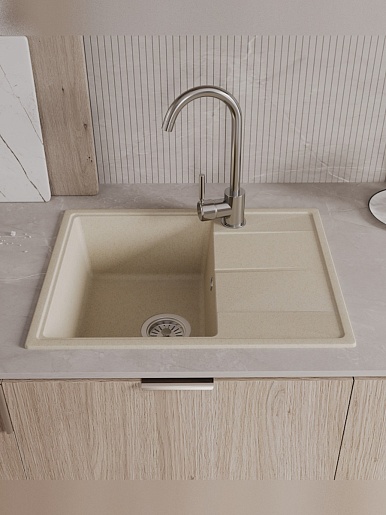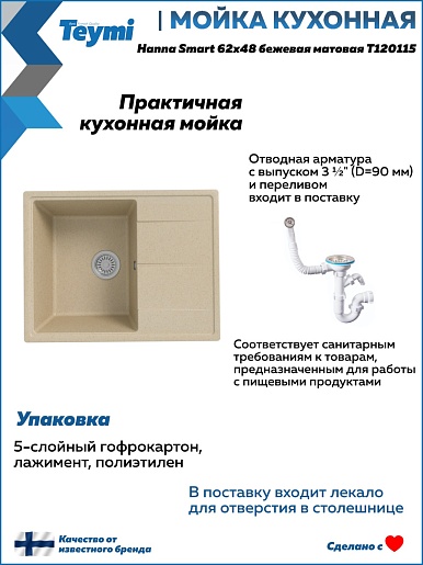 Мойка кухонная кварцевая Teymi Hanna Smart 62 бежевая - арт. T120115.