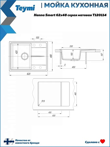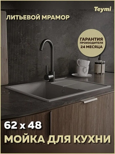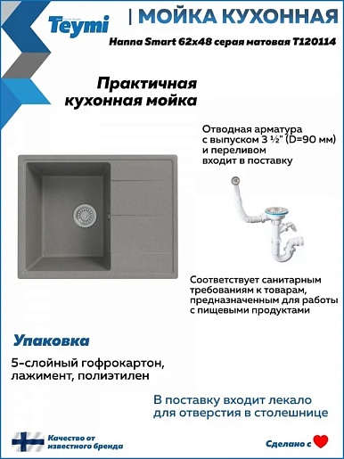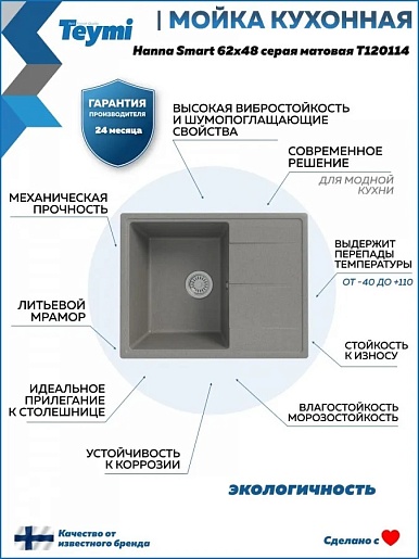 Teymi Мойка кухонная Hanna Smart 62 матовая серая