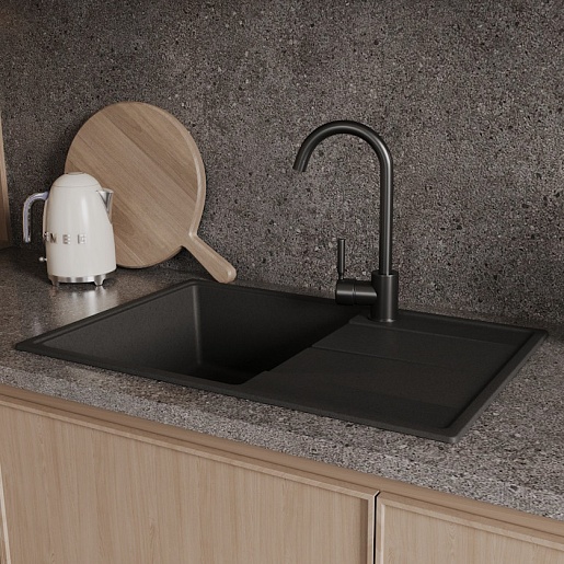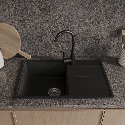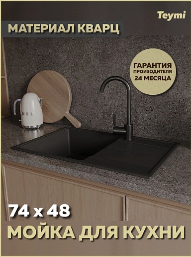 Мойка кухонная кварцевая Teymi Hanna Smart 74 черная - арт. T120116.