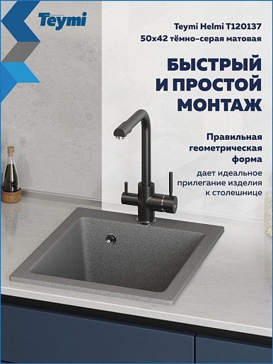 Teymi Мойка кухонная Helmi 42 темно-серая