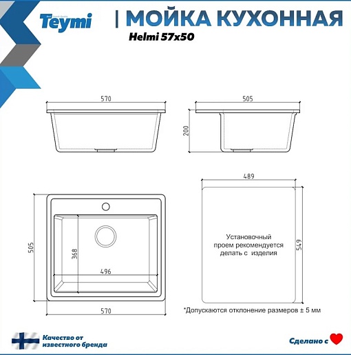 - Мин. ширина шкафа для монтажа мойки: 60 см.